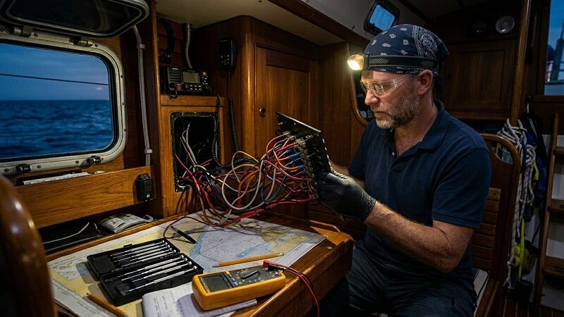 Знания об электрике из гражданского строительства вам мало помогут — электрика яхты заметно отличается, и требования к ней другие